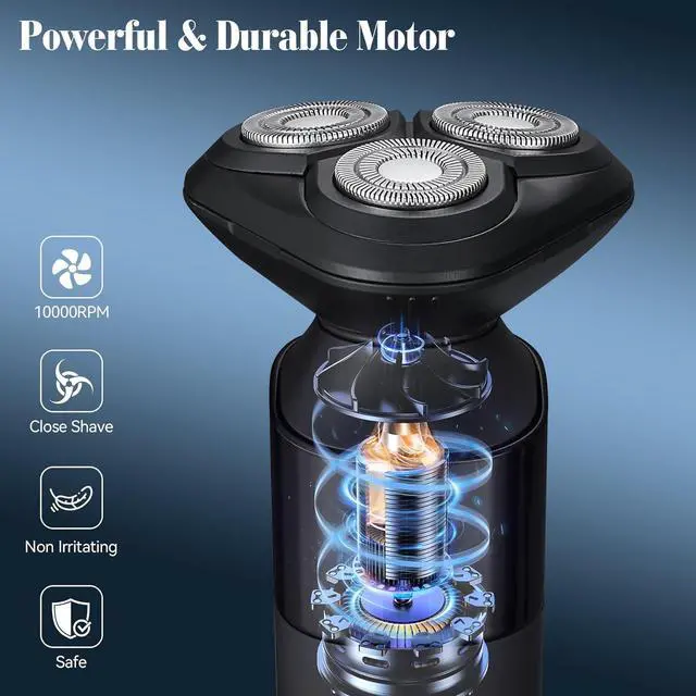 • Upgraded Detachable Rotary ShaversMagnetic 3D floating Precision Shaving Head Experience an ultra - close shave with our innovative magnetic shaving head, featuring 3D 360° contour adaptation. It effortlessly conforms to the curves of your face, capturing every single hair for a smooth and clean shave every use