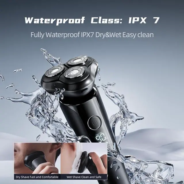 IPX7 Waterproof: Take hypoallergenic steel to resist corrosion, prevent impurities and protect your skin. Wet/Dry usability, the whole body of the electric razor is IPX7 waterproof