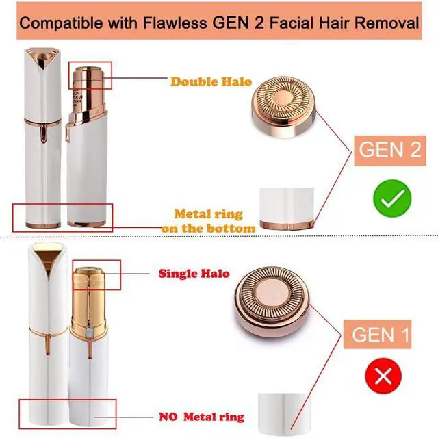 Compatibility: Our facial hair remover replacement heads, it is designed for finishing touch flawless generation 2 hair remover, not fit for gen 1. (Notice: Please refer to our second product picture to judge your shaver model before purchase. If you are not sure of your model, please contact us