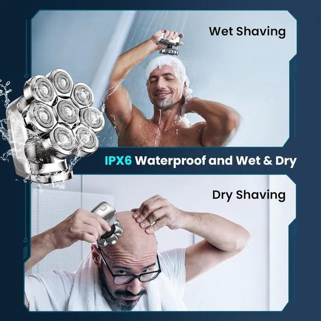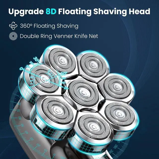 • Effortless Shaving : 8D floating head shavers for bald men provide a seamless, irritation-free shaving experience, the ultra-flexible heads glide over your bald head, ensuring a smooth shave from every angle