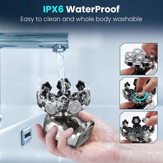 • Versatile Waterproof Design: Perfect for both wet and dry shaving, our bald head shavers for men are fully waterproof. Enjoy a refreshing wet shave with foam or a quick dry shave anytime, anywhere; Plus, cleaning is a breeze just rinse the removable head under the tap