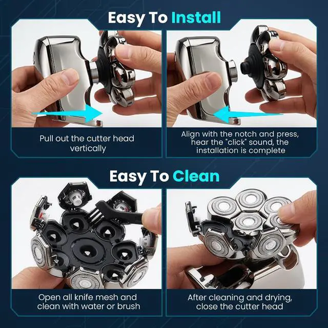 Effortless Shaving: 8D floating head shavers for bald men provide a seamless, irritation-free shaving experience, the ultra-flexible heads glide over your bald head, ensuring a smooth shave from every angle