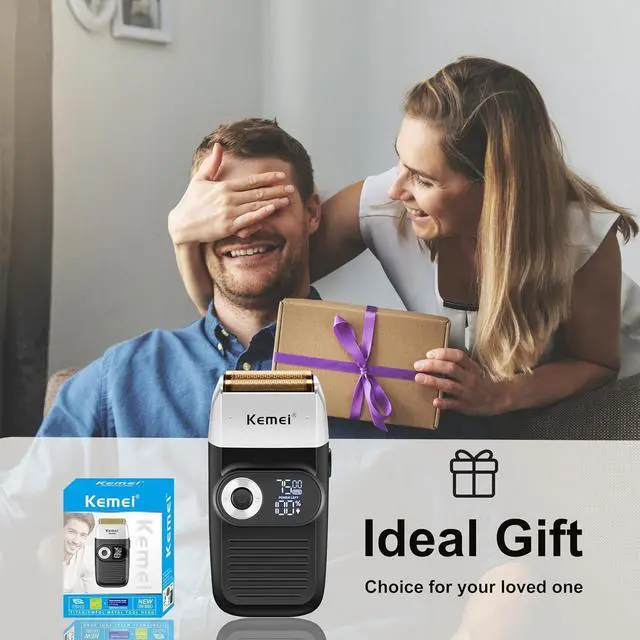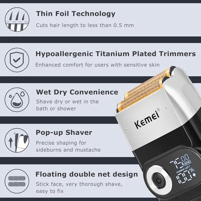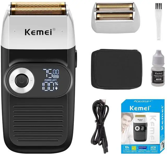 2-IN-1 MULTI-PURPOSE ELECTRIC SHAVER FOR WHOLE FAMILY: KEMEI 2026 professional foil electric shaver combines a bald head shaver and fade trimmer in one, meeting