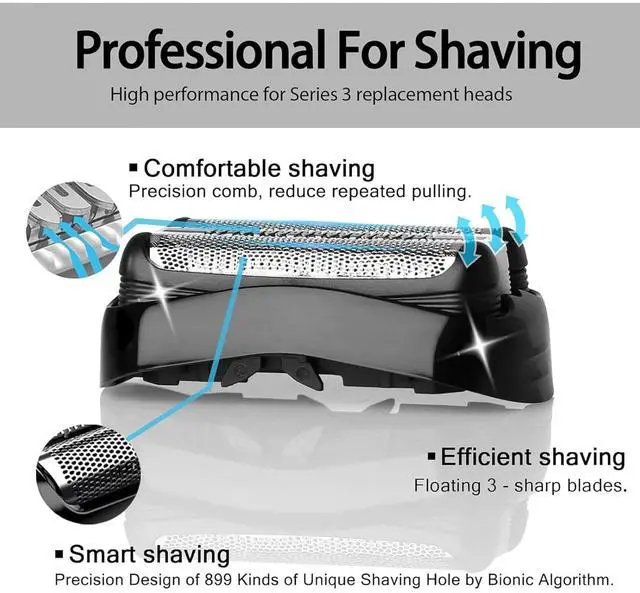 • Professional for ShavingThe shaving replacement head applies floating 3-blade, precise tooth comb technology and bionic mesh design, which can bring you a more comfortable, efficient and pleasant shaving experience.