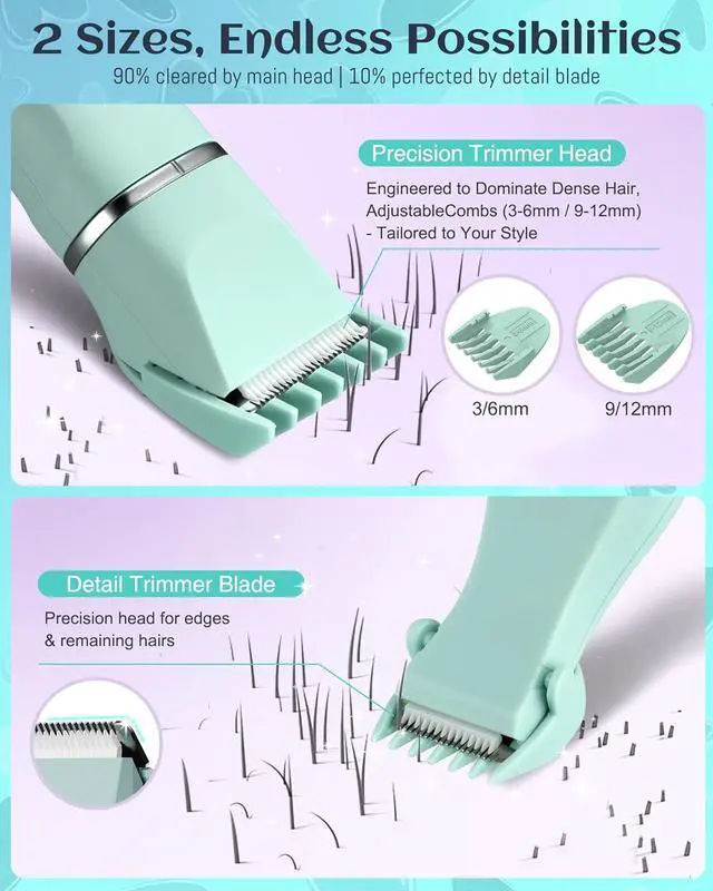 ALL IN ONE HAIR TRIMMERThe electric shaver for women, clippers & body groomers features 2 wide blades20 mm/32 mm & 3 kind length guide comb, help you customize the shaving effect for your armpits, legs, bikini, arms, keep you more clean, neat, and attractive.
