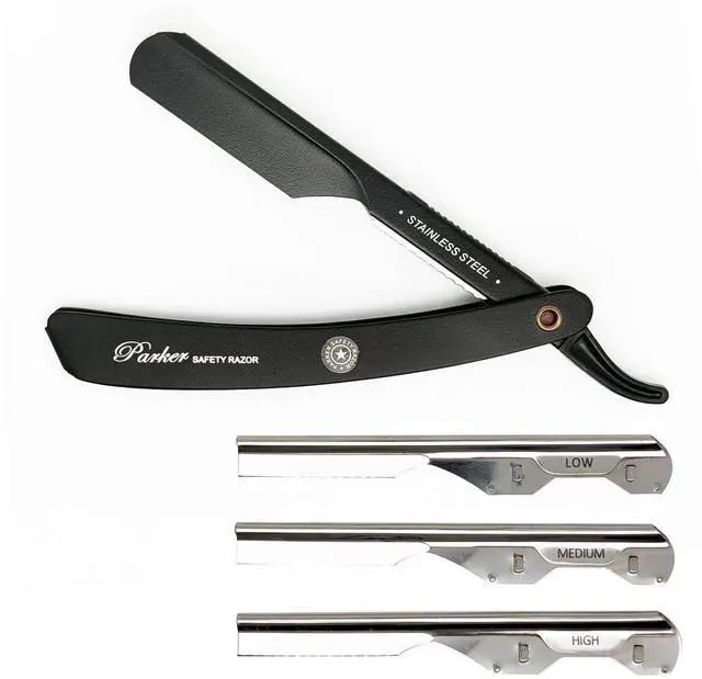INCLUDES 5 PREMIUM BLADES Comes with five Parker Platinum half blades, so you can start shaving right out of the box and test which exposure works bes