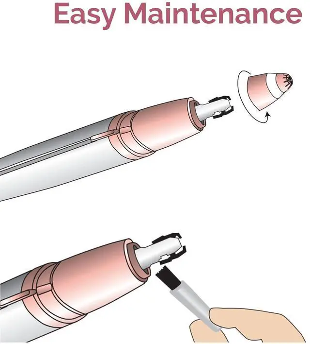 Electric trimmer features an 18 karat gold-plated head that' s easy to use by simply holding the eyebrow face hair trimmer and using it like an eraser for removing hair above, below and between the eyebrows with pinpoint precision