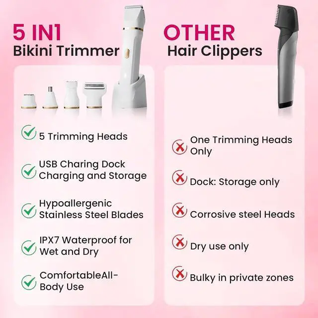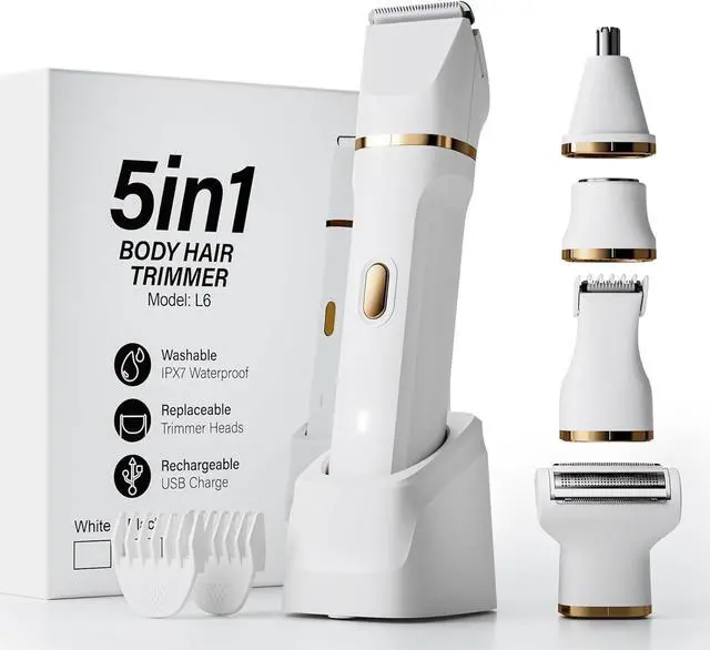 5-in-1 Bikini TrimmerValentines Day Gifts. The OKYUK bikini trimmer for women features 5 efficient shaving heads and 2 guard combs capable of removing hairs on various parts of the body. This electric razors can help you customize the shaving effect for your face, arms, legs, armpits, nostrils and bikini area in a few minutes. Bid farewell to traditional shavers' discomfort and pain as our anti-cut blade and high-power motor deliver a faster, smoother, and more comfortable shave.