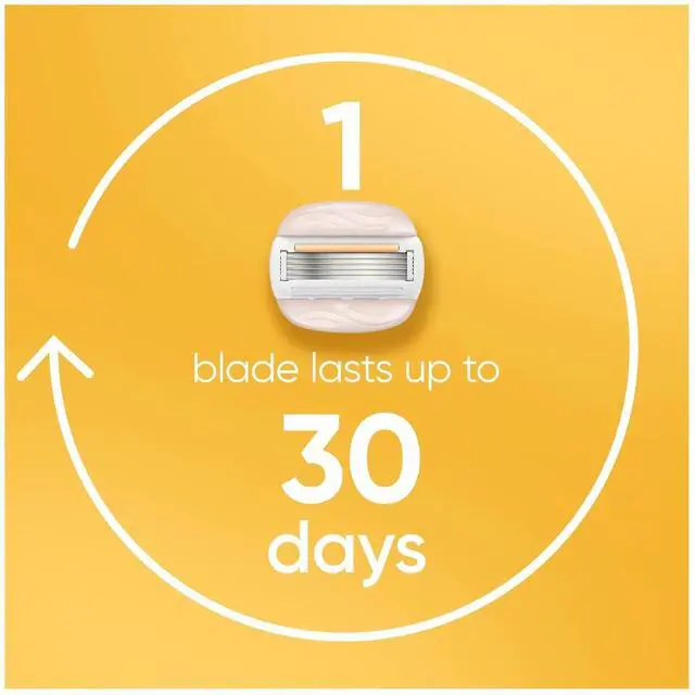 5-BLADE RAZOR: Utra-sharp blades for visibly smooth and soft skin with every stroke. Each refill lasts up to 30 days based on 2x/week shave