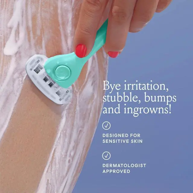 WOMENS RAZOR KIT: A non-slip ergonomic handle, four 5-blade razor refills, and signature magnetic holder.