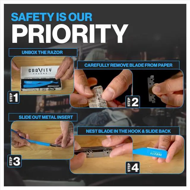 EXPOSED BLADES - Our straight edge barber razor is 2 mm exposed so you can clearly see what you' re shaving and cut hair with precision. Our straight edge razor has a stainless steel insert that makes it easy to load the Gravity blades.