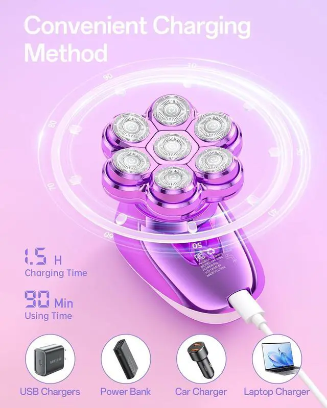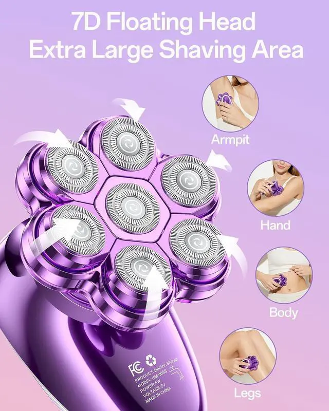 7D Floating Magnetic Heads Our electric shaver for women features flexible 7D heads that hug every body curve, from face (ideal as face razors for women) to bikini areas. The arc-curved design captures more hair in one pass, avoiding missed spots or repetitive strokes. This electric razor delivers salon-worthy smoothness at home, fast and evenly.