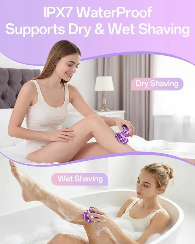 IPX7 Waterproof Wet & Dry Shaving This shaver for women is fully IPX7 waterproof, safe for shower/bath wet shaves or quick dry touch-ups. The magnetic detachable head rinses under running water easily, washing away hair and residueno tedious maintenance, just convenient grooming.