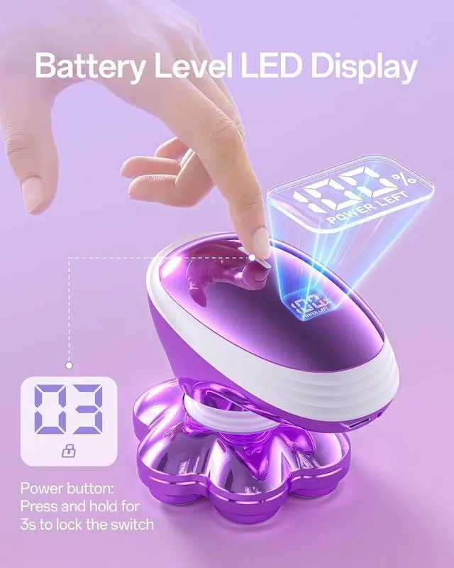 Smart LED Display & Long-Lasting Battery This electric shaver for women has a smart LED screen showing battery level, low-battery, and wash reminders. The 800mAh battery fast-charges in 1.5 hours via USB-C, lasting 90 minutes cordlessly. Activate the 3-second travel lock for safe storage.