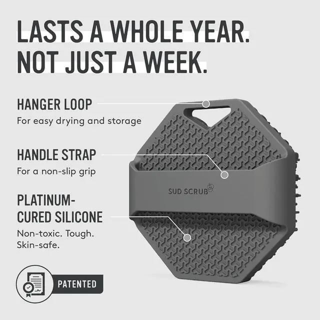 USE IT ALL YEAR: Loofahs fall apart, washcloths get moldy, and cheap brushes? They crack way too easily. But with Sud Scrub' s platinum-cured silicone, you get over 12 months of reliable daily use. One purchase and youre done.