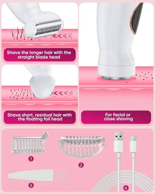 Efficient and Pain-Free: Designed specifically for women' s skin, the hypoallergenic blade mesh gently conforms to the contours of the skin, providing smooth and precise trimming even in sensitive areas such as the underarms, bikini line, and limbs. It does not pull on hair, causing no irritation, making it an efficient and pain-free body electric razors for women, helping you achieve your desired beauty quickly.