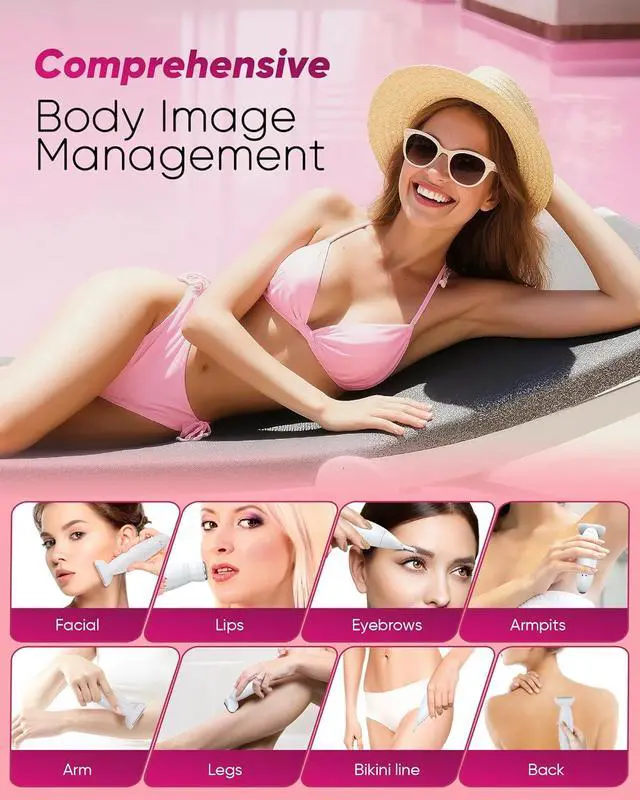Women: This fully upgraded bikini trimmer for women features three multi-functional blades: one for body hair removal, suitable for underarms, hands, legs, and bikini areas; one for facial grooming, effectively removing fine, short facial and lip hair; and one for trimming eyebrows and nose hair, helping you achieve perfect eyebrow shape and clear nasal passages. With this multi-functional razor set, you can achieve smooth, flawless skin quickly and precisely.