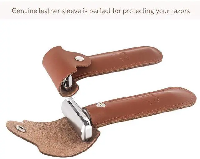 WHAT YOU GET: 1 pc Razor, 1pc Stand, 1pc Genuine leather protective sleeve & 10 pcs Titanium coated Stainless Steel blades (Made in USA)