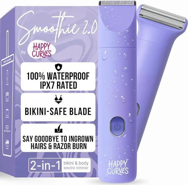 PERFECT FOR MULTIPLE HAIR LENGTHS - The Happy Curves Smoothie 2.0 Bikini Trimmer comes with a snap-on head for trimming and a foil head for shaving. It also includes two adjustable trimming guards for different hair lengths, making it the perfect pubic hair trimmer for women.