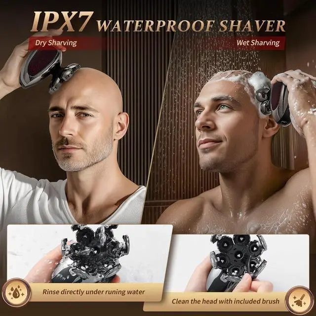 IPX7 Waterproof Shaver for Dry & Wet Shaving: For an ultra-close shave, we recommend prepping your beard with shaving foam to soften facial hair prior to shaving. The whole body of the head shaver is IPX7 waterproof, allowing you to enjoy both comfortable dry shaving and a refreshing wet shave with your favorite shaving foam. The included cleaning brush enables quick and hassle-free maintenance, ensuring your shaver stays in perfect shape with minimal, easy care.