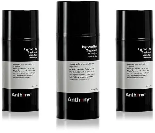Anthony Ingrown Hair Treatment for Men, Gel Solution to Calm Razor Burn, Scar and Redness Eliminator, Bump Removal, 3 Fl Oz, Pack of 3