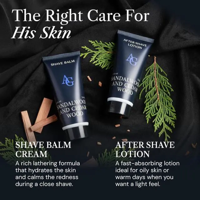 COMPLETE MENS GROOMING ROUTINE. This premium mens shaving kit gift set provides a two-step system for a smooth finish. Apply the thin-layer shave balm for an effortless razor glide, then use the after shave lotion for men to cool and comfort the skin.