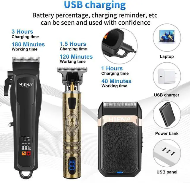 Adjustable hair clipper: The hair clipper with adjustable blades can be used for trimming hair and beard. You can easily control the length of your hair and trim various hairstyles with adjustable cone bar and limit comb. Charge your trimmer for 3 hours and enjoy 180 minutes of cordless use.