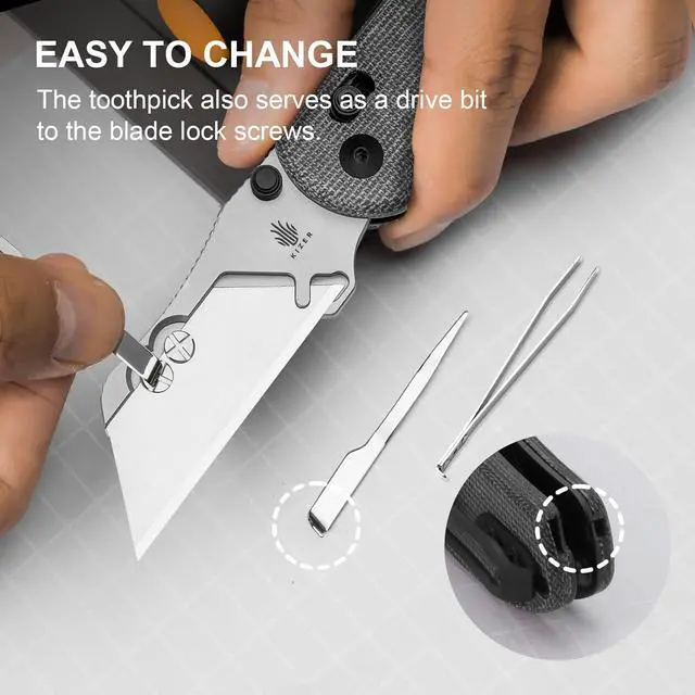 Express Personality: Kizer Drop Bear box cutter knife offers a choice of PEI(ultra-lightweight), acrylic (vibrant colors), micarta (textured grip), or G10 (durable composite). Different materials and finishes allow pocket knife to adapt to urban/outdoor scenarios. Your EDC knife becomes a style statement.
