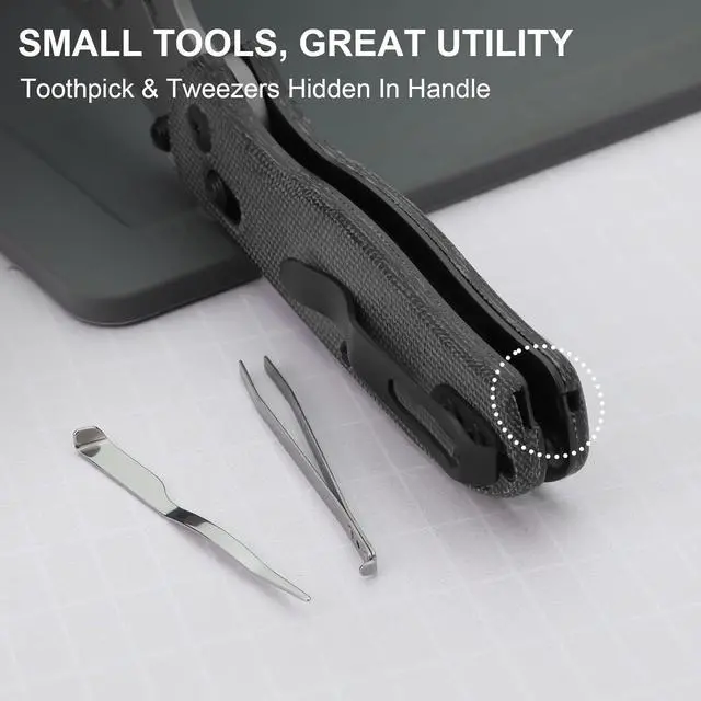 • Small Tools, Great Utility: The hidden tools of folding utility knife are easy to access and highly practical. The end of the toothpick also doubles as a drive bit compatible with the blade lock screws, making easy to change. Each package includes 5 extra replacement blades, adding convenience.