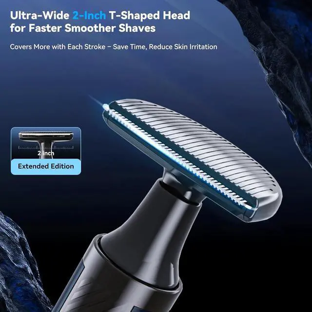 Multi-Functional Grooming Kit: Elevate your grooming routine with the WUXO back shaver for men, upgraded with a 2-inch (5cm) ultra-wide T-shaped head for faster, more efficient back shaving.