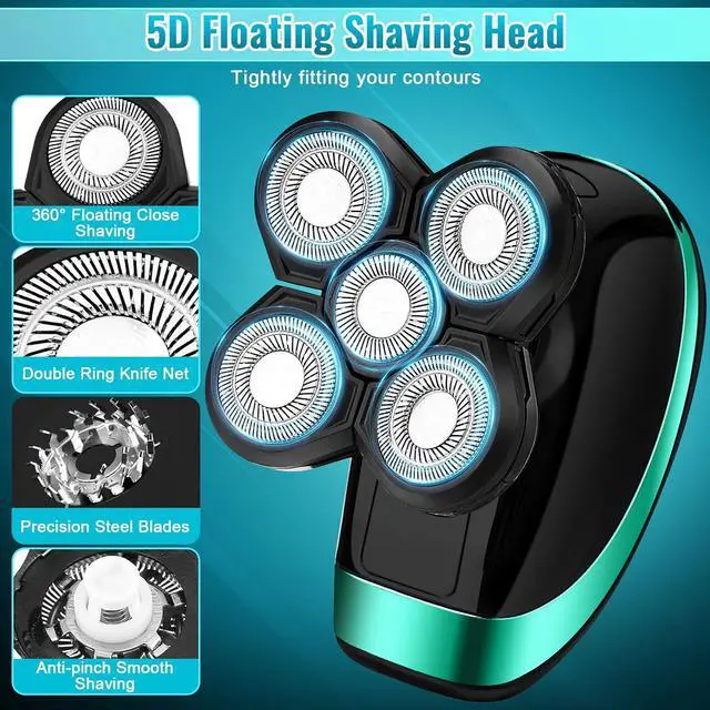 • MORE FITTING TO THE FACE & LED5D compact embracing design allows our shavers more fitter to the contours of the head, face, neck, and even chin. No need to press down hard for easy shaving. The electric razor uses a newly upgraded blade system, which increased double shaver area than ordinary razors, floating technology effectively cushions facial pressure to give you a comfortable and smooth shaving experience. LED lights illuminate during use to help you see your face more clearly.