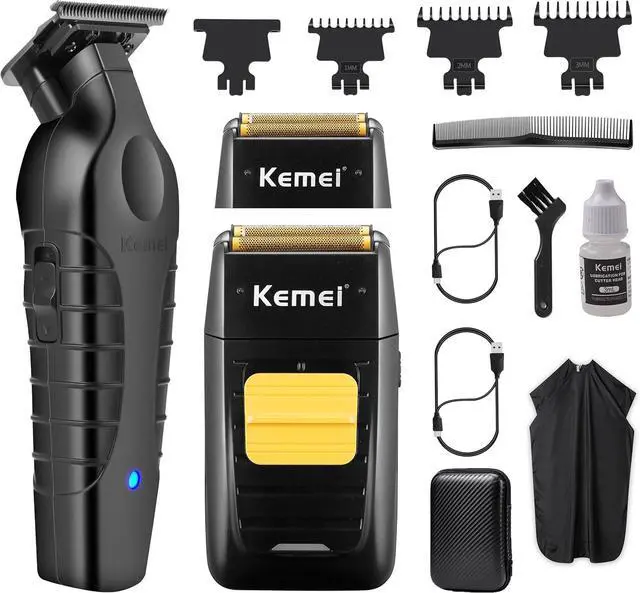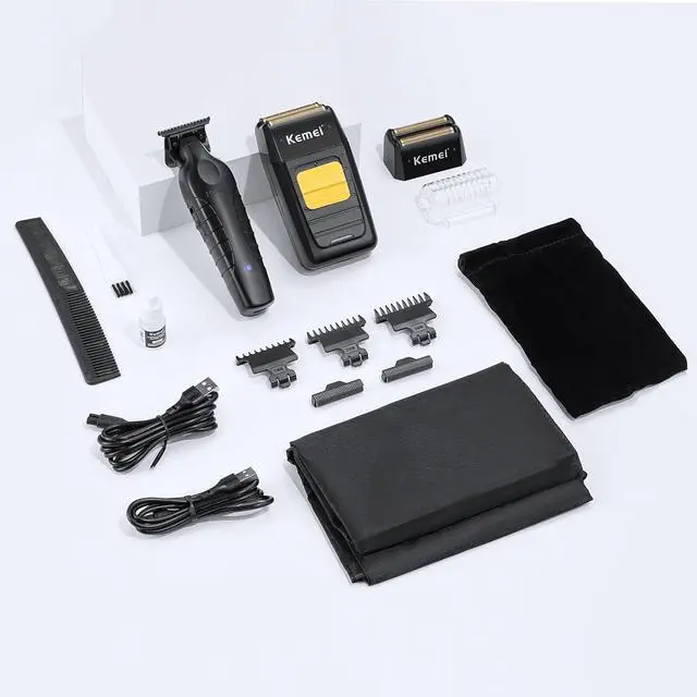 Men: KEMEI 2299 & KEMEI 1102 2-in-1 grooming kit includes 1 hair trimmer for men, 1 foil shaver, 3 guide combs (1 mm, 2 mm and 3 mm), 2 USB charging cables, 1 barber cape and more. This KM 1102 electric shaver for men also includes replacement heads & nets. Whether you are trimming your hair, styling your beard, or achieving a close shave, this set ensures professional-quality results at home or on the go
