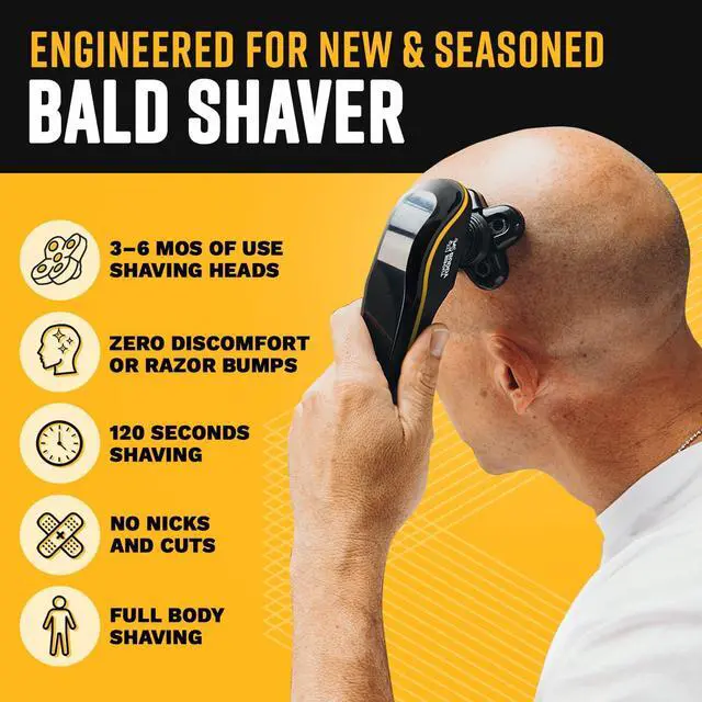 WATERPROOF & EASY TO CLEAN Bald head shaver is fully waterproof for wet or dry use, with cleaning indicator and rinseable design to remove hair buildup and prevent motor damage