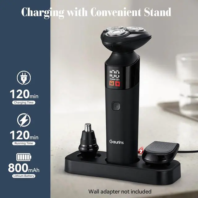 2-in-1 Charging Base & Storage DockGaurins electric shaver comes with a weighted ( 0.26 lb) charging stand that does double duty. It not only charges your shaver efficiently but also acts as a sleek organizer, providing a dedicated home for your razor and beard/nose hair trimmer to keep your bathroom counter tidy and all grooming tools within reach