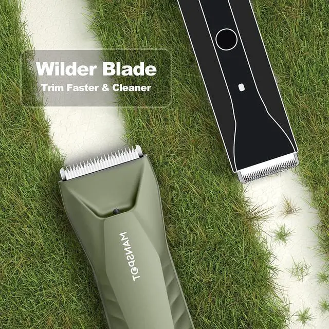 MANSPOT Manscape Trimmer for Men Ball/Pubic/Groin, Electric Body Hair Trimmer, Replaceable Ceramic Blade Heads,Waterproof for Wet/Dry Use,Standing Recharge Dock,90 Minutes Shaving After Charged(Green)
