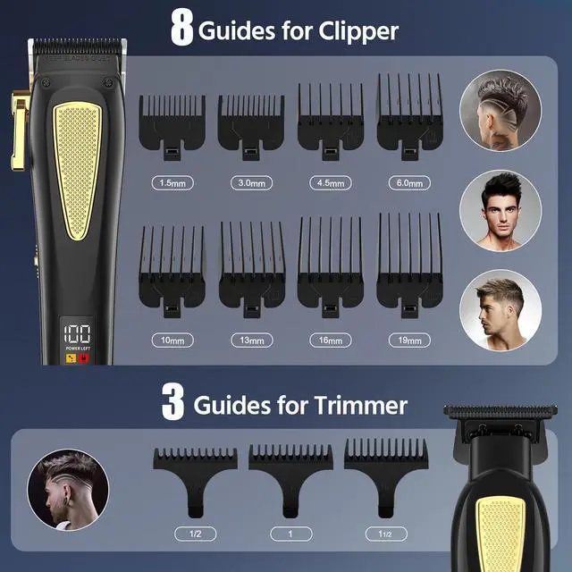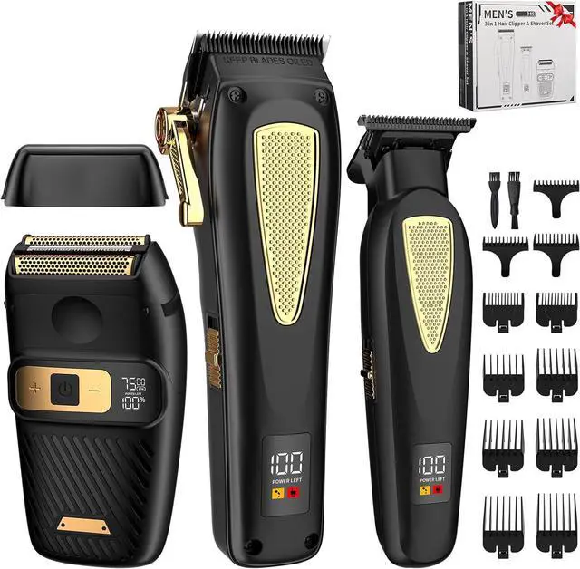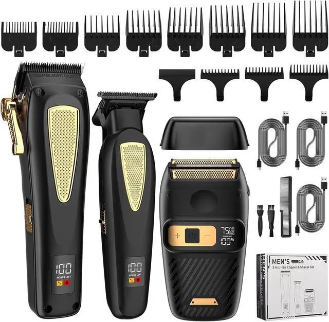 Versatile Trimming: This 3-in-1 cordless hair clipper set includes a T-blade trimmer, rotary shaver, and precision trimmer for all your grooming needs.