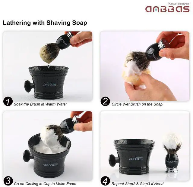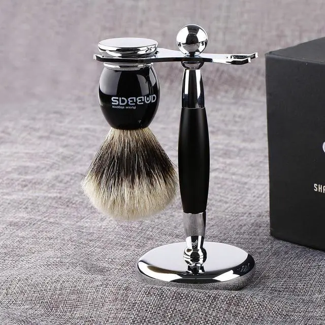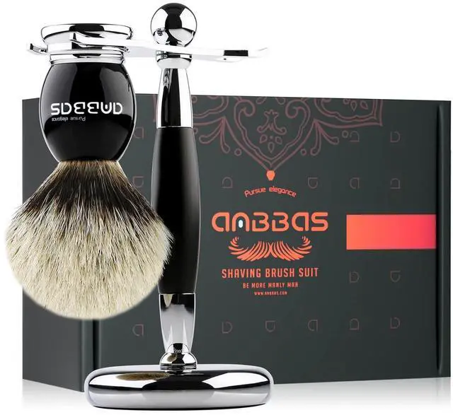 PACKAGE: 1 Badger Shaving Brush, 1 Razor and Brush Stand Holder; 1 Package Box; Anbbas complete service system