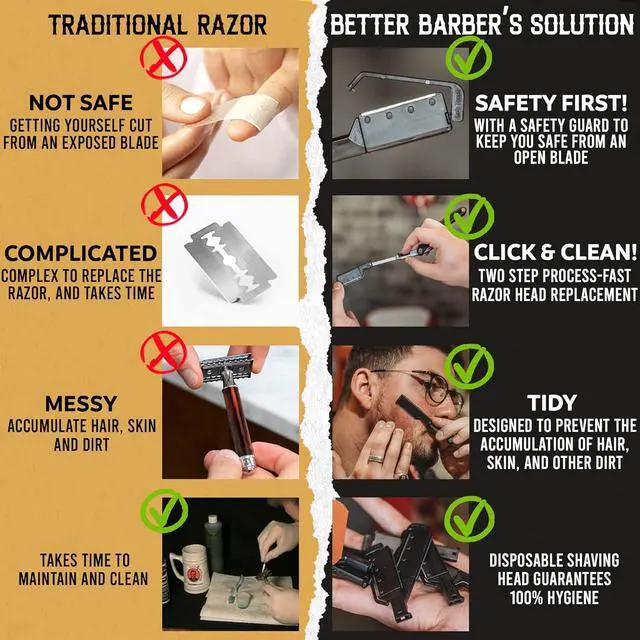 Uncompromising Quality: Better Barber' s 30 years of experience in producing premium-quality razors with the highest-grade materials you a flawless shave and trim. We are confident that you will enjoy shaving with this classic shavette straight razor blade set. An ideal present for husbands, fathers, boyfriends, and others.
