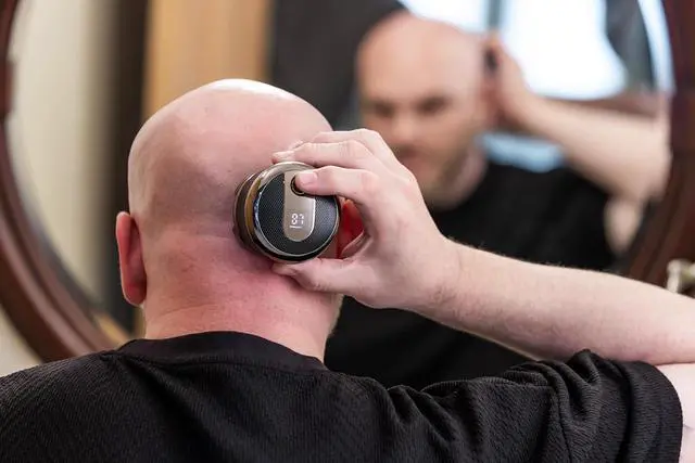 Ergonomic handheld design ensures comfortable, controlled head shaving.