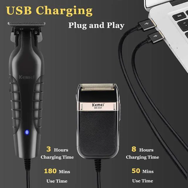 Extended Battery Life with Quick USB Charging: Say goodbye to frequent recharges. The barber clipper delivers up to 180 minutes of use on a 3-hour charge, and the foil shaver for men provides 50 minutes of operation after an 8-hour charge. USB compatibility makes charging easy through power bank, laptop, or adapterideal for home, travel, or gym use