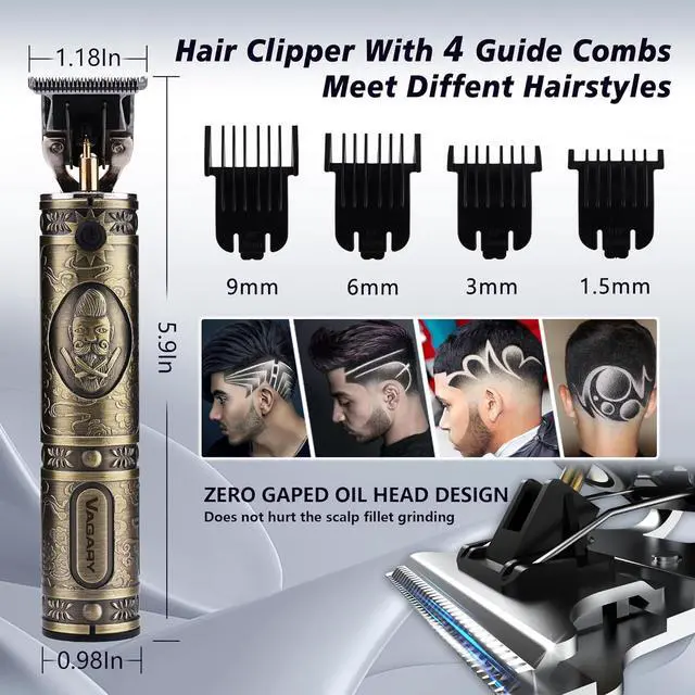 [Ergonomic Design]: This is a complete set of haircut tools, fashionable personalized vintage engraving, metal body, with exquisite carving patterns on the handle, comfortable and non-slip, low noise, small and portable, can be easily created Various hairstyles.