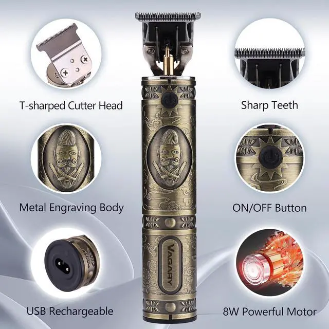 VAGARY Professional Electric Hair Clipper for Men,T Blade Beard Hair Trimmer,Clippers Cordless & Rechargeable Electric Shaver Haircut Clipper with Guide Combs,Home Barber Salon Set (Bronze)