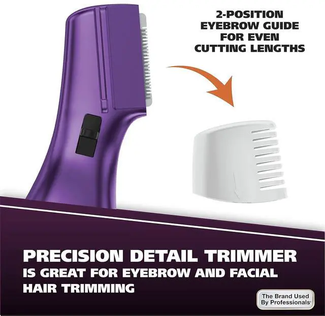 Simple & Convenient - This sleek, rechargeable ladies trimmer features 3 interchangeable heads, an eyebrow detailing head, a rotary facial shaver head & a trimmer head
