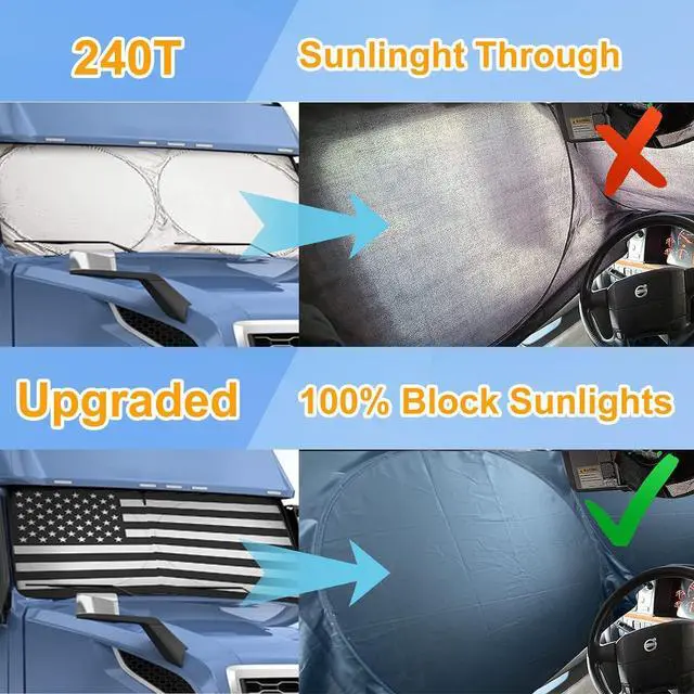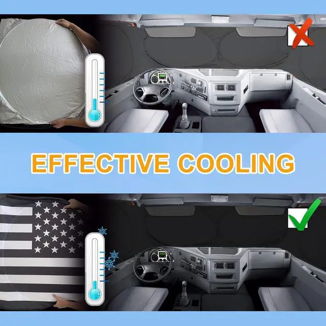 Compatibility: 163.5 inches in length, 36 inches in height, 32 inches in ring diameter. This patriotic truck sun visors for the windshield are suitable for most semi-trailers, commercial vehicles, large drilling rigs, RVs, boats, etc. Make sure to measure your windshield size before ordering.