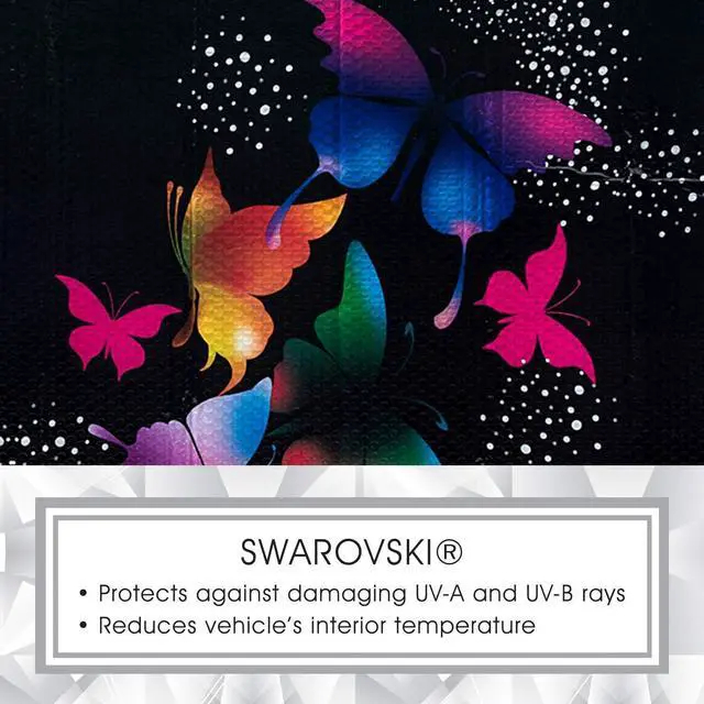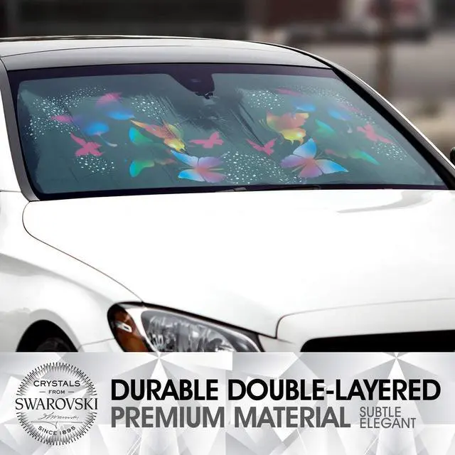 UNIQUE SWAROVSKI DESIGN: This special edition sunshade will definitely turn heads! The Swarovski crystals add a touch of elegance and class to your vehicle, while subtly sparkling in sunlight or moonlight. An elegant accessory with ultimate function.