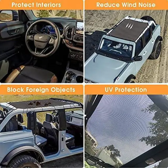 FITMENT: Mesh Sun Shade Top is suitable for 2021 2022 2023 2024 2025 Ford Bronco 4 Doors