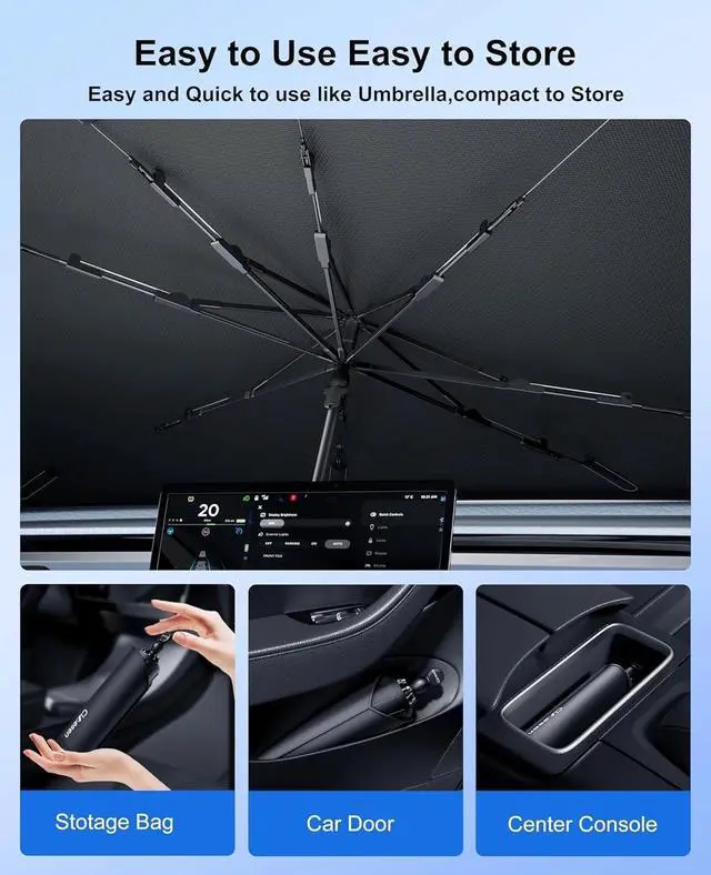 Storable Design - The windshield sunshade comes with a storage bag, which makes it easy to store the sunshade well in the glove compartment or trunk when not in use to avoid clutter. It's a great car accessories