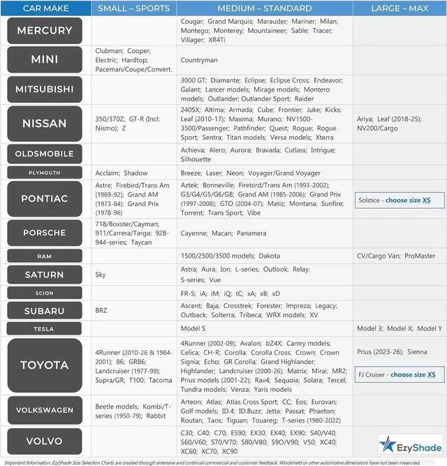 EzyShade Windshield Sun Shade with Shield-X Reflective Technology. See Size-Chart with Your Vehicle. Foldable 2-Piece Car Sunshades Reflect UV Sun and Heat and Protect Your Car. Standard (Medium) Size