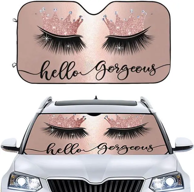 5 Layers UV Block CoatingsThe upgraded car windshield sunshade is made of 5 layers of the nano level reflective coating, effectively reducing the temperature inside the car (reducing 20-30 ° C, with a strong light blocking rate of over 99%). Use the Hello Gorgeous eyelash print sun visor to add color and personality to your vehicle, making it unique and helping you quickly identify your car.