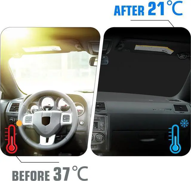 Benefits of using the SunshadeDouble Layer Design Sunshade and sunscreen cooling, protect your car dashboard, prevent car leather seats from cracking and fading, and prevent long-term exposure to harmful gases in the car to affect health. Protect yourself and your family from harmful sun exposure. Enjoy a cool summer